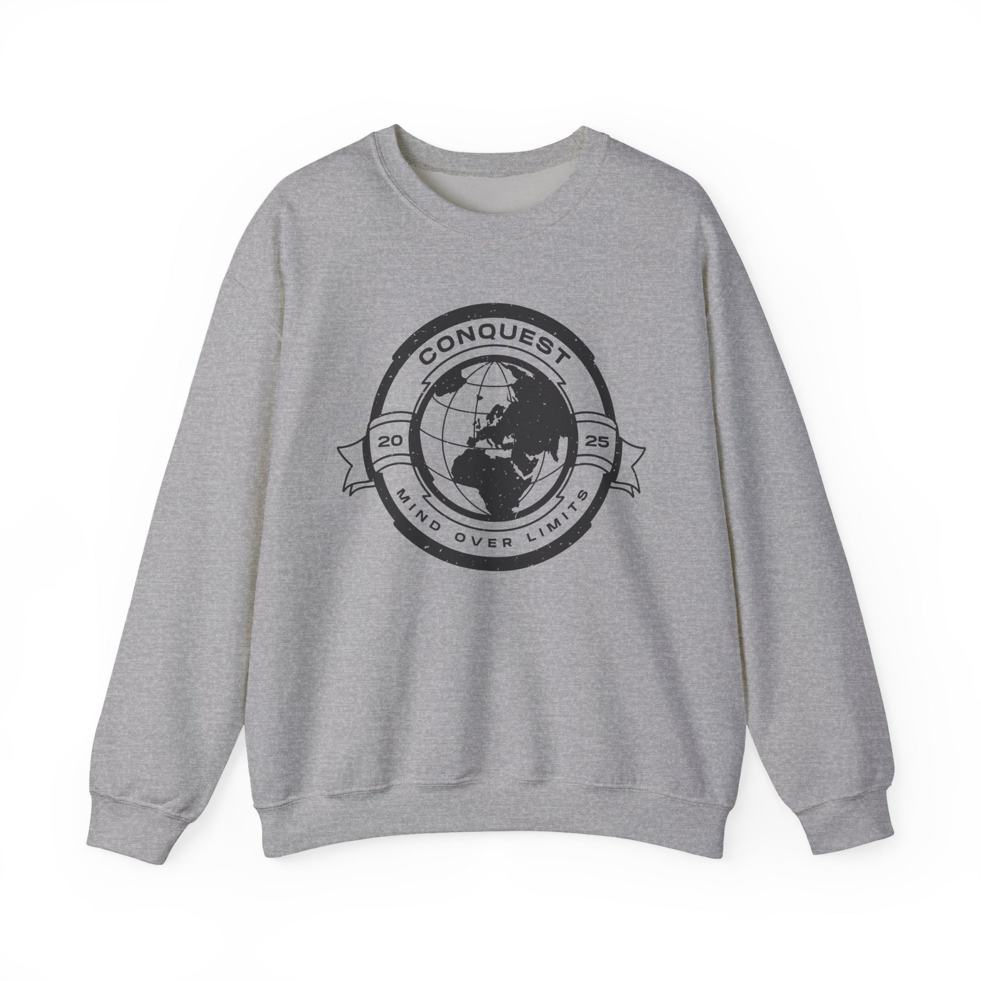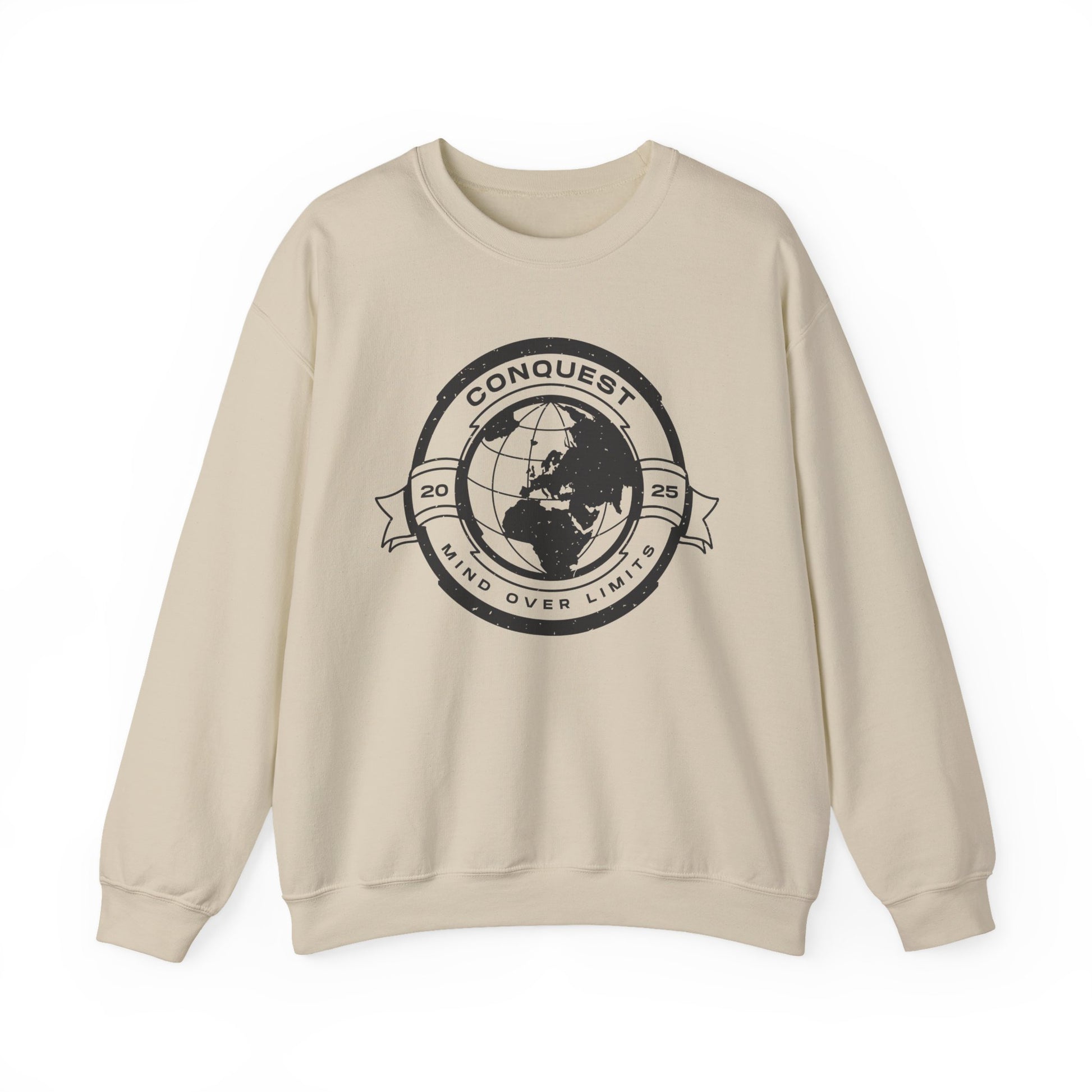 Conquest Globe Crewneck Sweatshirt — 'Conquest: Mind Over Limits' Vintage Earth Logo